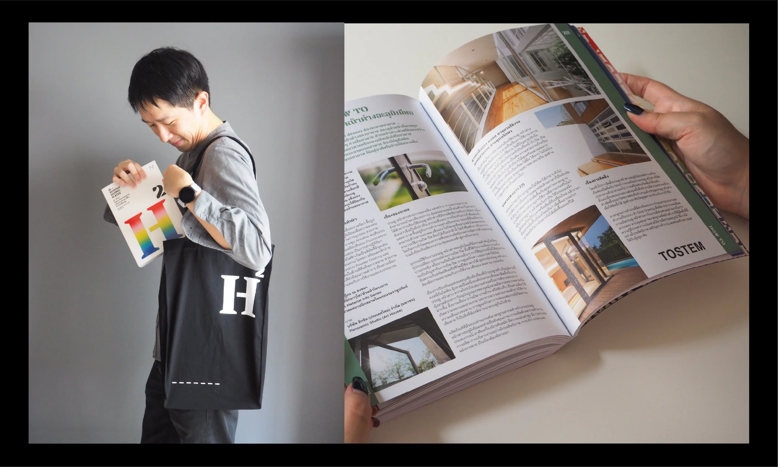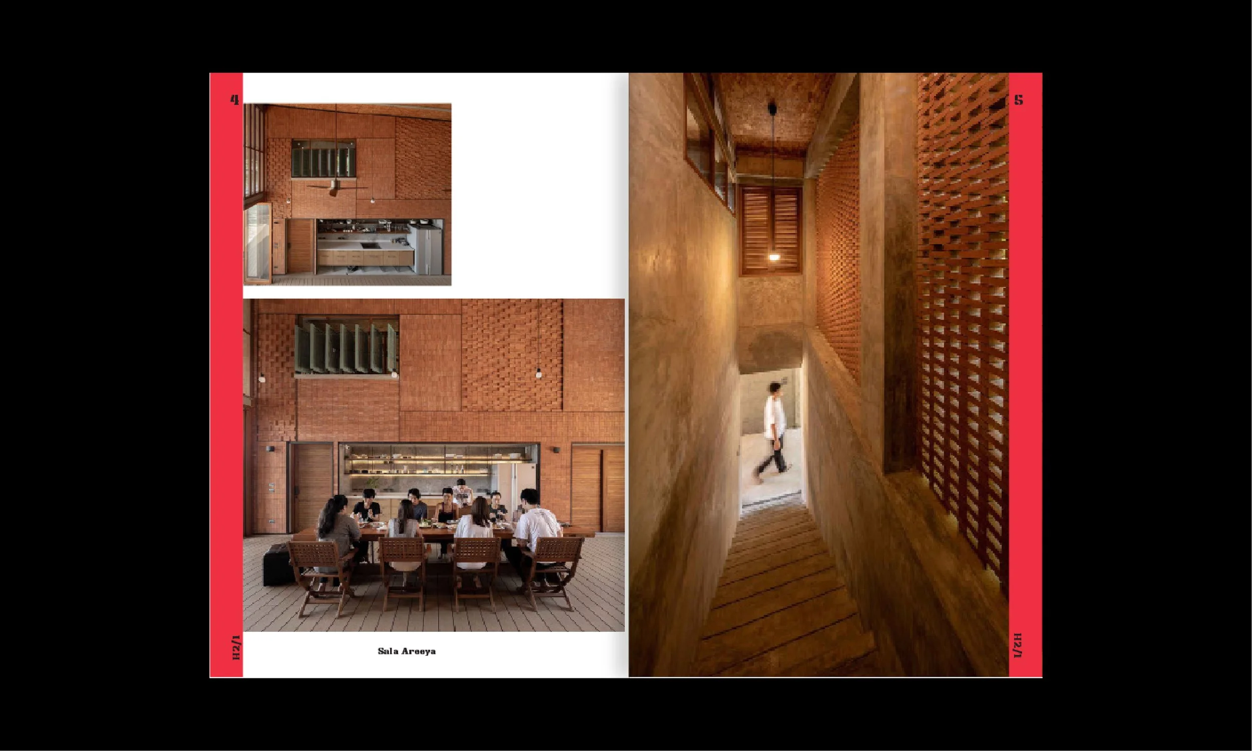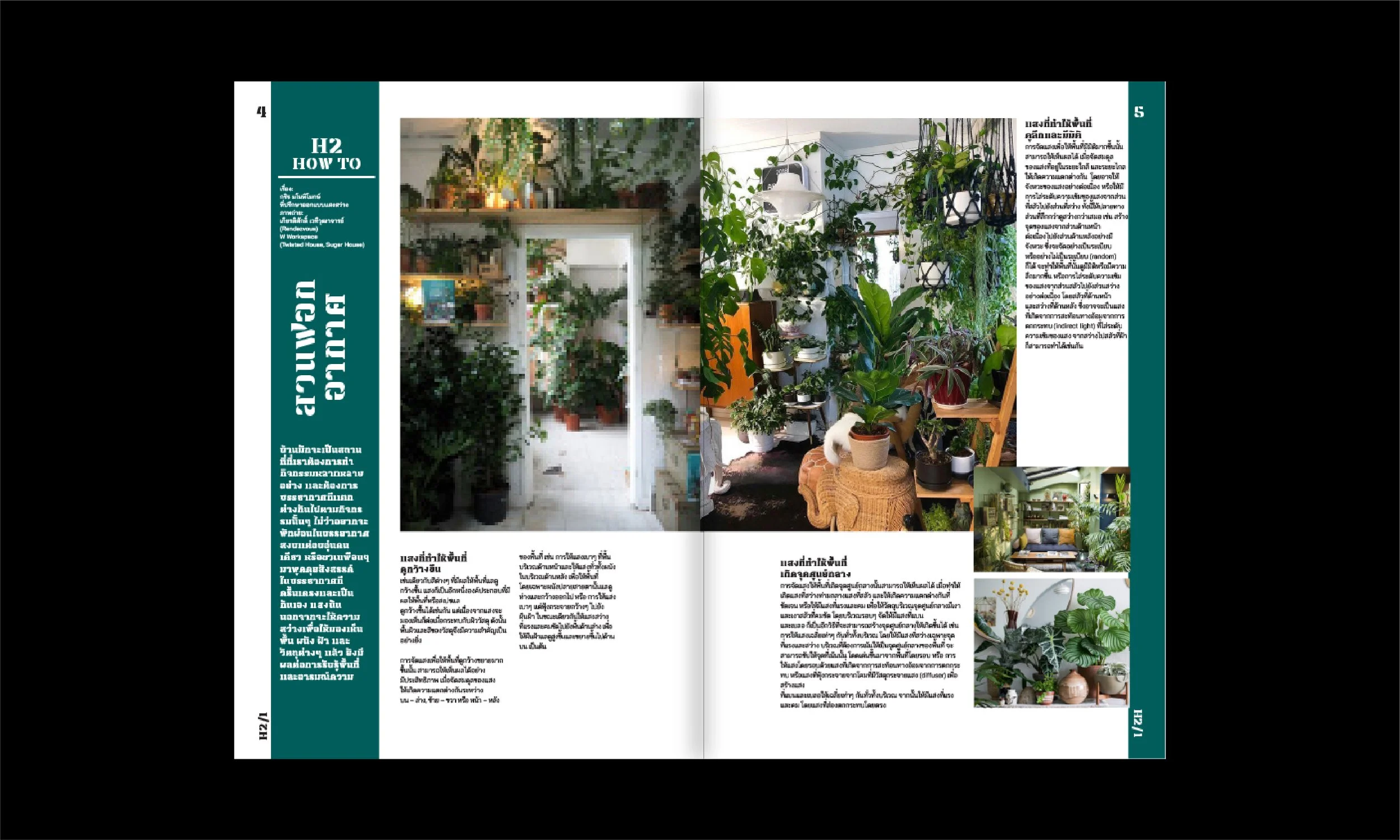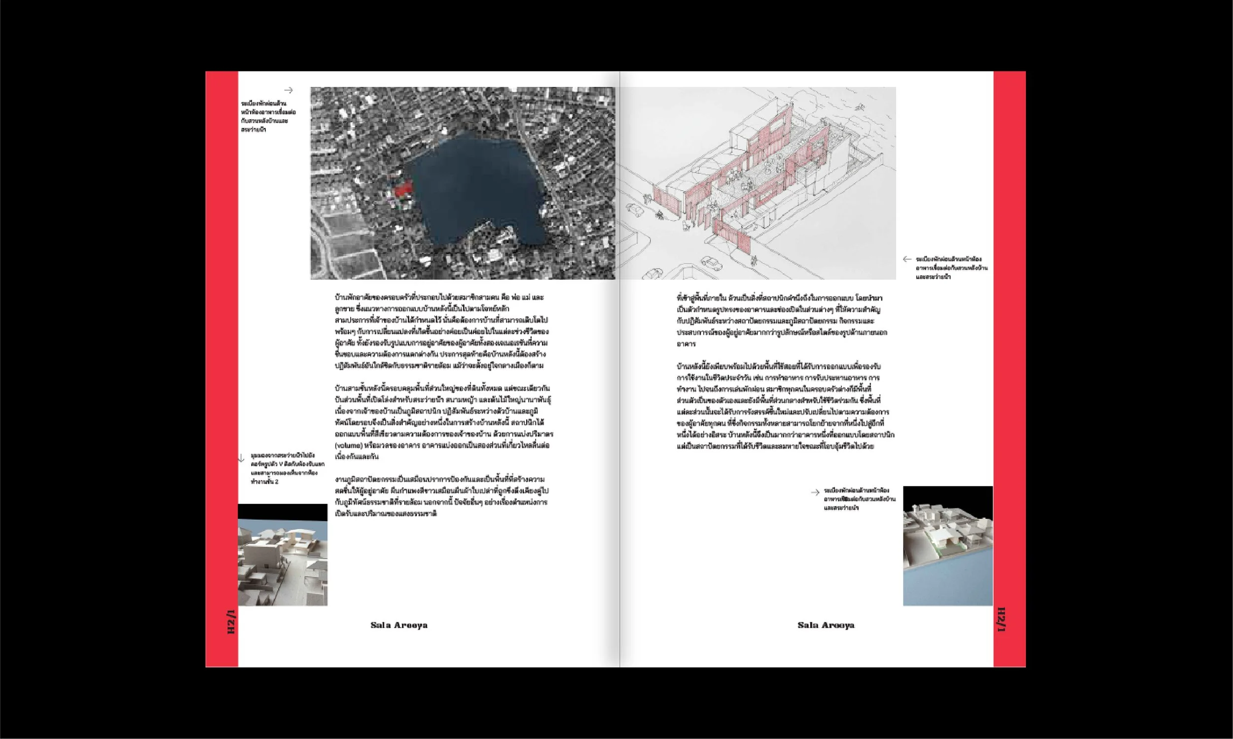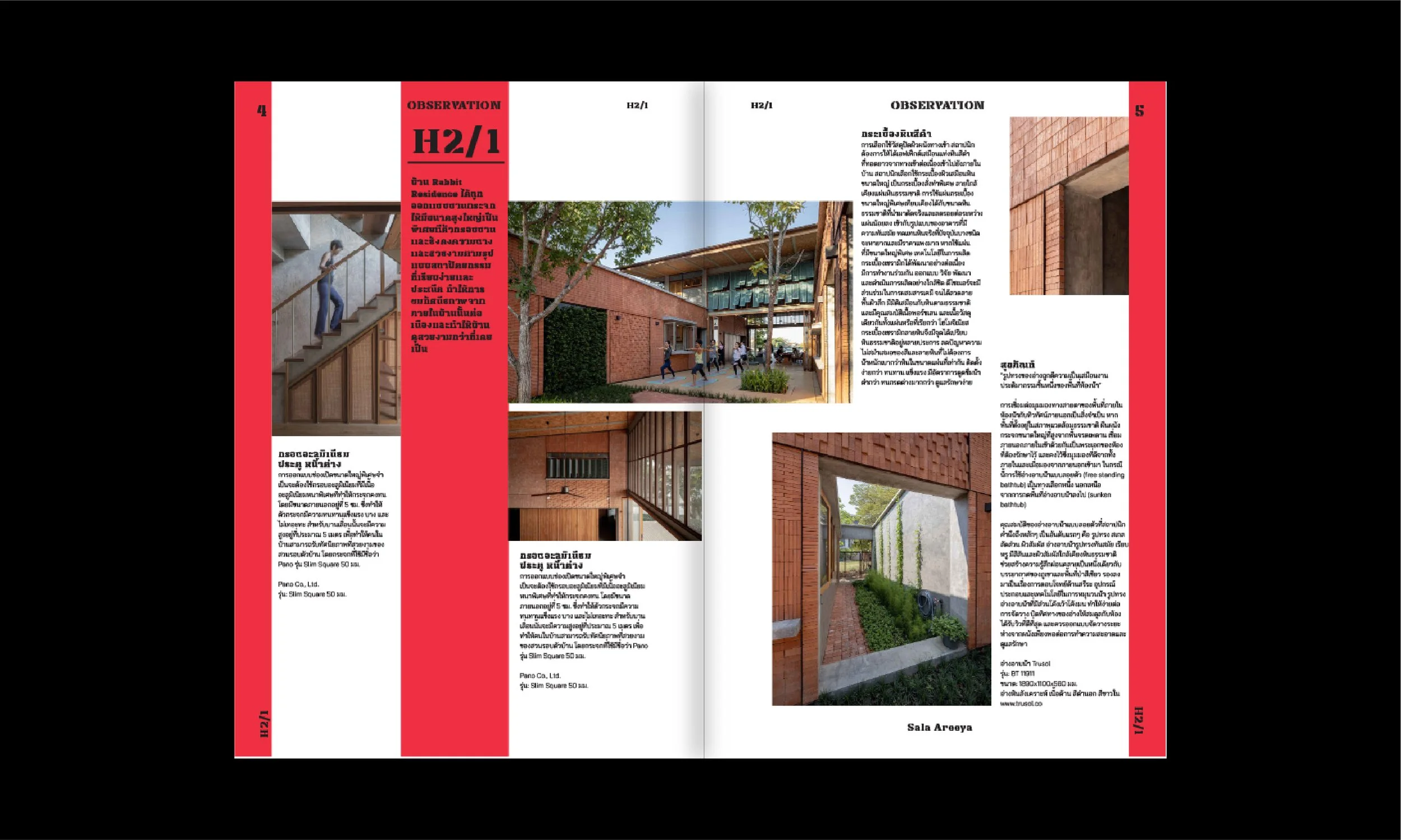 The initial design sketch of book design on H2, a Thai language book about house and residential design in Thailand, which the experiment gone with image and text arrangement layout and the colour bar to express the scene of each house.