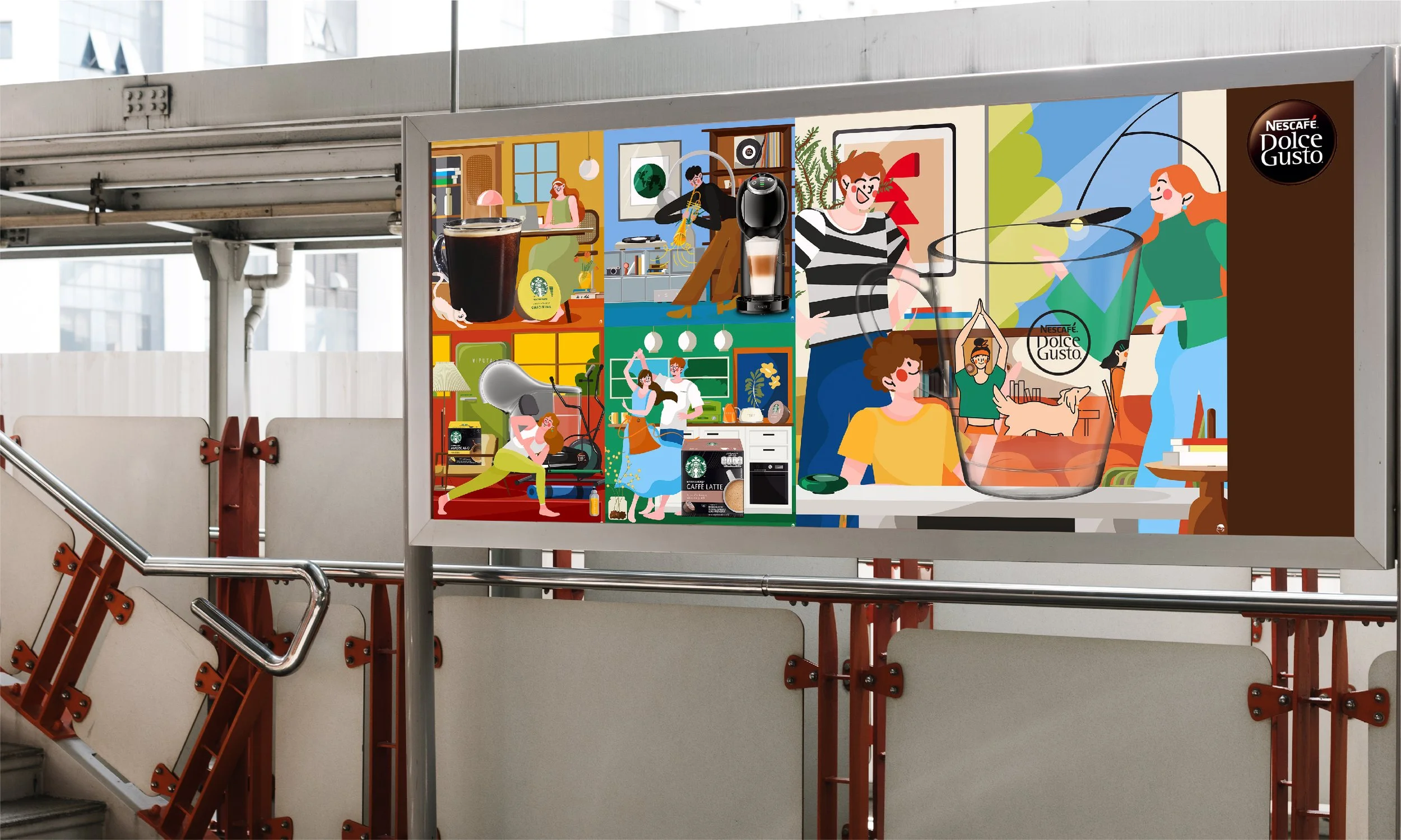 “Refreshing your day with good coffee”, the concept statement of the visual storytelling through Viput A. illustration in variety lifestyles to match the coffee culture at home with NESCAFÉ Dolce Gusto and Starbuck capsule. Through the visualisation, the environment graphic element support also took part to indicate the vibe and lifestyle of people, which I mainly created on Adobe Illustrator on iPad Pro.